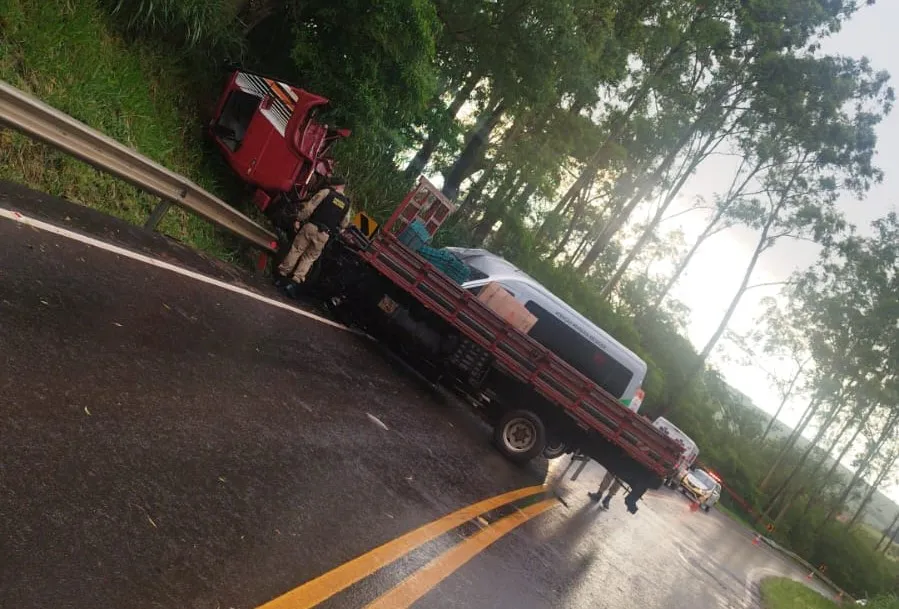 Caminhão tomba em curva da PR-479, em Tuneiras do Oeste, e acidente termina sem feridos