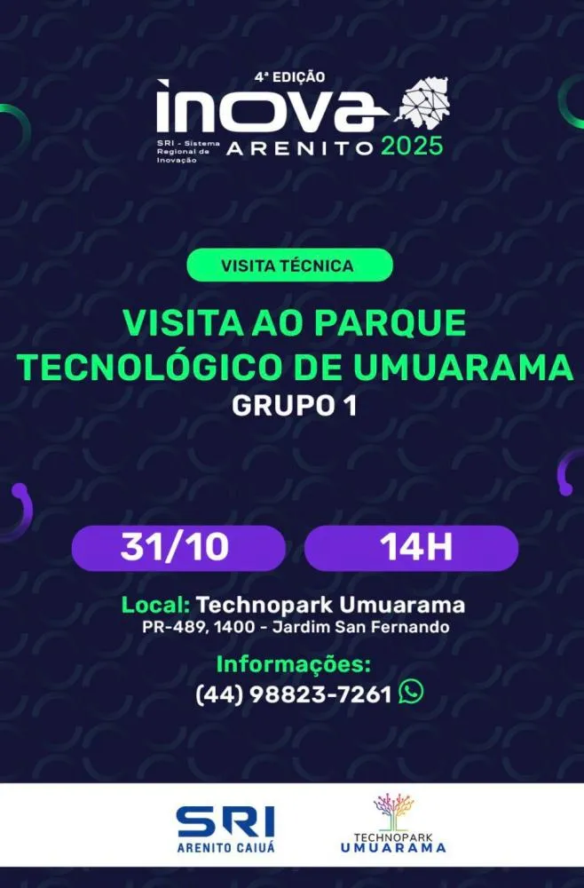 A ação faz parte da programação oficial do Inova Arenito 2025, evento que reúne universidades, empresas, startups e órgãos públicos para discutir e promover o ecossistema de inovação da região Noroeste do Paraná.