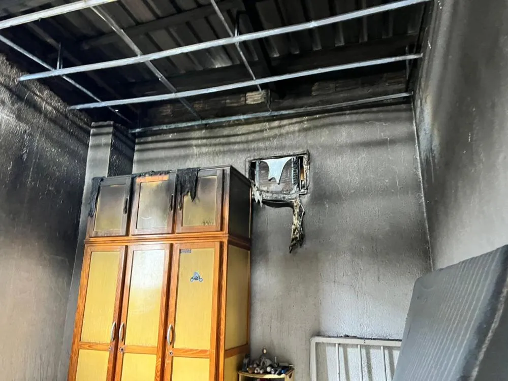 As chamas se espalharam rapidamente. O forro de PVC de todos os cômodos acabou derretido e parte da estrutura do telhado ficou comprometida. No quarto incendiado, o telhado não resistiu ao calor e desabou. Quando a Polícia Militar chegou, no final da madrugada, as chamas já haviam consumido grande parte do interior da residência. Uma equipe do Corpo de Bombeiros realizou o rescaldo para impedir que o fogo voltasse a se propagar.