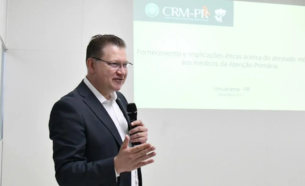 Médicos que atuam na Atenção Primária em Saúde (APS) de Umuarama participaram, na última semana, de uma palestra ministrada pelo conselheiro do Conselho Regional de Medicina (CRM) do Paraná, Fabrício Kovalechen. O encontro, no auditório da Secretaria Municipal de Saúde, teve como foco a responsabilidade e a ética na emissão de atestados médicos, além de abordar outras demandas e deveres relacionados ao exercício da profissão.