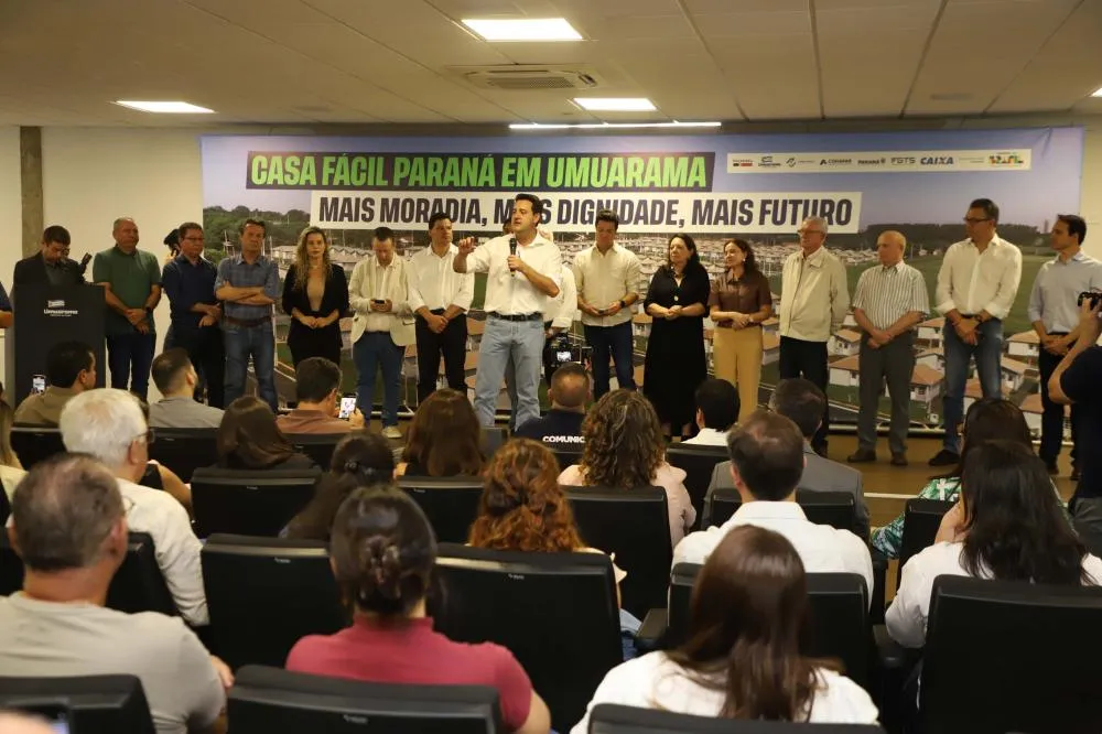 O governador Ratinho Júnior anunciou nesta quarta-feira (17) a construção de 1.500 novas moradias em Umuarama, no Noroeste do Paraná. O empreendimento será executado pela construtora Pacaembu, com financiamento da Caixa Econômica Federal, e receberá cerca de R$ 30 milhões do Governo do Estado, por meio do programa Casa Fácil Paraná.