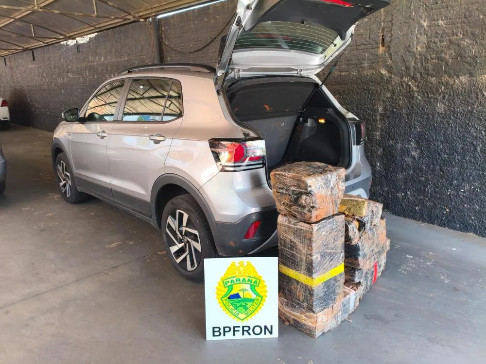 Na terça-feira (20), a atuação da equipe do BPFRON se destacou com uma operação em Nova Prata do Iguaçu, nas proximidades da Usina Salto Caxias. Um homem de 30 anos foi detido com 124,55 kg de substância análoga à maconha no bagageiro de um VW T-Cross que ostentava placas falsas, resultado de furto ocorrido em 2025 em São José dos Pinhais.