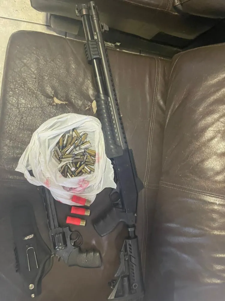Durante as buscas no imóvel, os policiais localizaram um verdadeiro arsenal em um dos cômodos utilizados pelo investigado. No local foram apreendidas uma espingarda calibre 12 e um revólver calibre .38. Além das armas, a equipe encontrou mais de 70 munições de diferentes calibres, entre eles .38, 12 e .380. Parte das munições estava escondida dentro de um guarda-roupas.