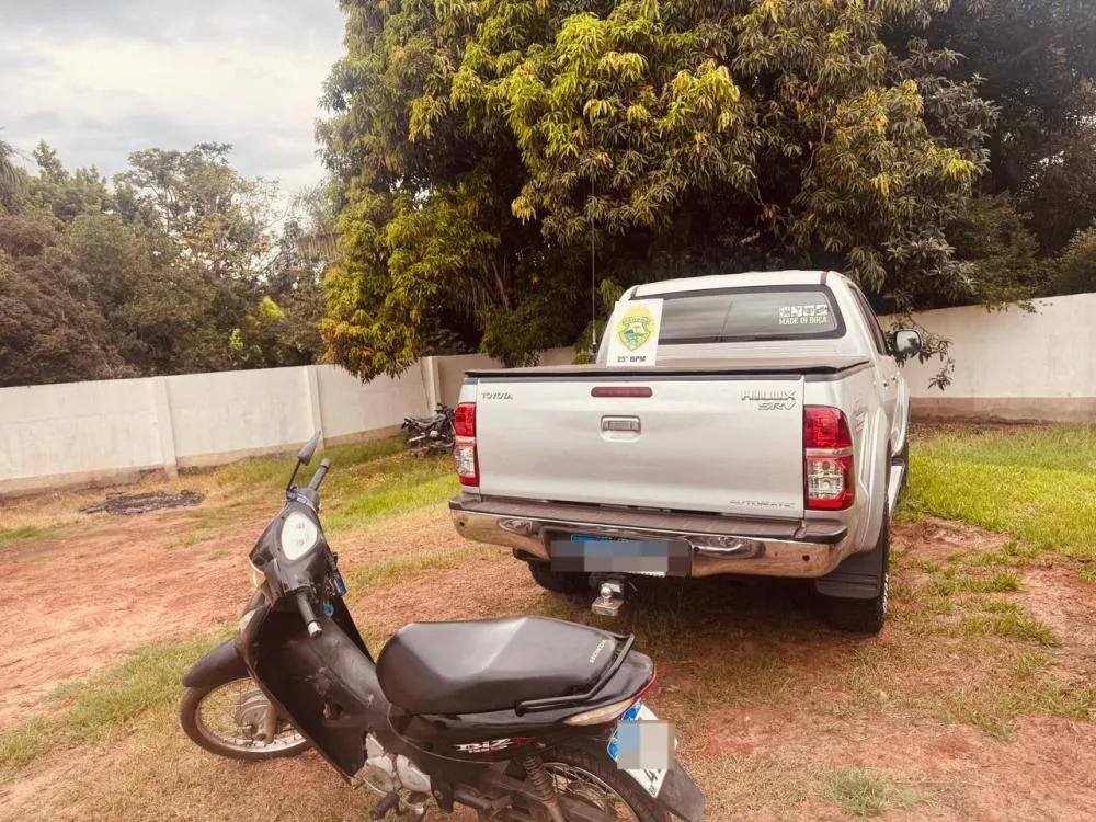 Durante as buscas, os policiais ainda conseguiram recuperar a motocicleta Honda Biz levada da residência. Pouco tempo depois, a caminhonete Hilux roubada também foi localizada. Os veículos foram encaminhados à delegacia e deverão ser devolvidos às vítimas após os procedimentos legais.
