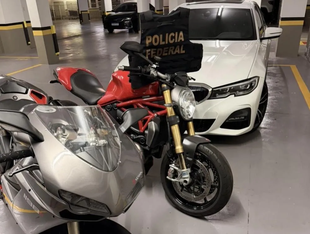 Ainda na mesma ação, foram apreendidos bens de alto valor, incluindo um veículo e motocicletas de alta cilindrada. Segundo a Polícia Federal, há indícios de incompatibilidade entre os itens encontrados e a renda declarada pelos investigados, o que reforça as suspeitas de atividades ilícitas.