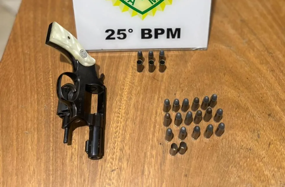 Com ele, foi apreendido um revólver calibre .32 contendo seis munições – três já deflagradas e três intactas = além de outras 17 munições intactas e duas deflagradas encontradas em seu bolso.