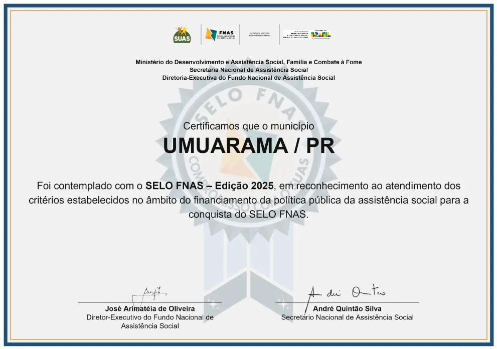 Umuarama conquista Selo FNAS 2025 e reforça excelência na gestão em Assistência Social