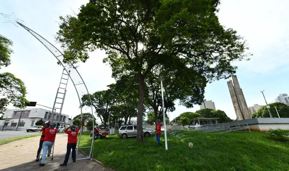 Iluminação decorativa para o Natal começa a ser instalada na cidade